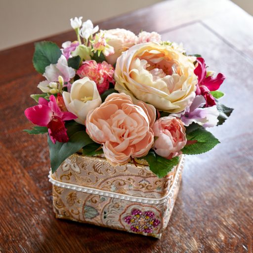 Her “ East meets West ” art and design sense developed throughout her amazing career. She graduated from Ritsumeikan University, majoring in International Relations having transferred there from Kobe Syoin Women’s College as she realized the English major she was undertaking lacked a truly international perspective. Meanwhile she got to know European flower arrangement and won the grand-prix title at a contest. This was a big turning point in her life and so her career as a flower decorator was determined.In 1998 she moved to Paris and travelled around Europe. These experiences and her eclectic studies help create her wonderful sense of art and design. Returning to Japan, she established her own unique brand “Atelier de Micché”. Her passion for design is endless; she took the Tilia Beads Embroidery Course by Keiji Tagawa and also studied a Space Design Course at Kyoto University of Arts and Design.She is currently studying under the tutelage of Kuwahara Senkei school of ikebana in Kyoto.